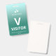 Vertical visitor badge with a simple design against a gradient from pale blue to teal A large white V makes it easy to quickly recognise the visitor as such. Personalise with your business logo.