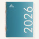 The cover does the work before they even open it. A deep teal gradient runs the full height of the page, with the current year set in large, confident type along the right edge — clean, modern, and immediately distinct from anything else in the supply closet. Your logo and company name sit in the upper left: present, professional, not overwhelming.