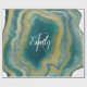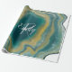 Teal Green Agate Marble Abstract Name Monogram Wrapping Paper