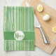 Teal, Green, and White Stripes Monogram Tea Towel