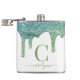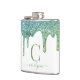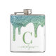 Teal Green Aqua Sparkle Glitter Drips Monogram Hip Flask