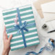 Teal Green Aqua White Stripes Birthday Wrapping Paper