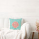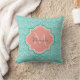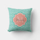A chic teal green art deco fish scale pattern square throw pillow with a light pink quatrefoil badge you can personalise by easily adding your monogram and name. This is part of the Arcadia Fishcale Blooming Dahlia Monogram Spring Collection.