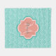 A chic teal green art deco fish scale pattern fleece blanket with a light pink quatrefoil badge you can personalise by easily adding your monogram and name. This is part of the Arcadia Fishcale Blooming Dahlia Monogram Spring Collection. Choose from 3 sizes.