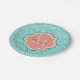 Teal Green Art Deco Fish Scales Pink Monogram Name Paper Plate