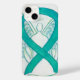 The guardian angel iPhone case features the art of a teal green awareness ribbon angel painting. The teal green ribbon colour means support for Agoraphobia, Anxiety Disorder, Dissociative Identity Disorder, Food Allergies, Fragile X Syndrome, Myasthenia Gravis, Obsessive-Compulsive Disorder, Ovarian Cancer, Cervical Cancer, Panic or Stress Disorders (PTSD), Polycystic Ovarian Syndrome, Polycystic Kidney Disease, Sexual Abuse, Sexual Assault, Substance Abuse, Batten Disease and Tourette's Syndrome (TS). The teal green awareness angel ribbon art iPhone case can be customised with personalised messages to make great cause phone cases for fundraisers, awareness gifts, or other special events or occasions.