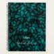 A black and teal coloured background with a botanical foliage metallic pattern. Personalise and add a year and name. White letters.