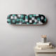 Teal Green Blue Black White Trendy Plaid Pattern Skateboard