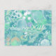 Teal Green Blue Marble Fluid Art Hello Postcard