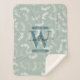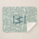 Teal Green Botanical Leaves Monogram Sherpa Blanket