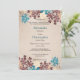 Teal Green, Brown & Ivory Flowers Retro Wedding S4 Invitation