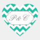 Teal Green Chevron - Custom Text and Monogram Heart Sticker