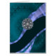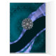 PERSONALIZE this stylish trendy feminine modern contemporary mauve blue swirly ribbon and a glittery crystal rhinestone jewel on a teal green vintage damask pattern , with your own text, name or monogram, initials.