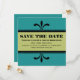 Elegant and sophisticated Fancy Art Deco Save the Date Announcement in teal and green featuring an art deco flourish and dotted border and a two-toned colour scheme. This modern design is perfect for announcing a deco themed wedding. Easy to customise, simply add your wedding details in the text fields provided. Click "Customise It" to find additional personalisation options.