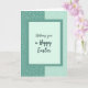 This design shows a tall, serene layout with the background split into two vertical panels that feel like they lean gently toward each other, like close friends sharing a quiet moment 🌷. The left panel is a deep teal with an organic, textured pattern that suggests woven fabric or a natural mosaic. The right panel shifts to a lighter mint green with soft mottling, like dappled light across a calm wall. A thin, muted teal border frames a pale aquamarine rectangle in the center, keeping everything neatly aligned. Centered inside that light rectangle is a flowing, cursive-style greeting in a dark teal tone, sized to stand out without crowding the space 🐰. The lettering sits comfortably in the middle with generous margins, giving the message room to breathe against the airy background. Along the edges, the deeper teal texture on the left contrasts with the smoother mint surface on the right, while the central frame stays crisp and evenly spaced.
