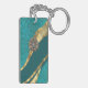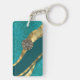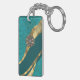 Teal green floral damask key ring