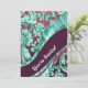 PERSONALIZE this stylish classy elegant girly feminine teal green antique vintage damask floral flower pattern and modern swirl ribbon pattern on a magenta background , with your own text, name or monogram, initial .