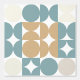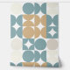 This design showcases a modern geometric pattern with circles and half-circles in shades of teal green, ochre brown, beige, taupe, and ivory against a white backdrop. It's an elegant and stylish design that embodies eclectic minimalism, perfect for artistic interior designers, decor enthusiasts, trendsetters, and fans of vintage retro or abstract digital geometric motifs. This ornate yet funky hipster pattern is versatile, available on a variety of contemporary home decor items, making it suitable for enhancing the ambiance of spaces such as master's bedrooms, kitchens, living rooms, man caves, college dorms, condos, studios, or apartments.