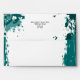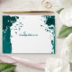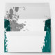 A teal green paint splatter decorates the wedding invitation envelope. The sender address of the bride and groom to be is places on the back of the envelope and an invitation to deliver the mail to... on the front. The envelope fits the teal-coloured design of the Grunge Style wedding suite. The inside flap shows a shadow image of splatter. Change the fill and with thus the splatter colour to match your personal wedding colours.
