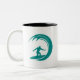 Cool Teal Green surfer silhouette riding a wave on a surfboard. Great gift for anyone from professional surfers to anyone that simply loves to surf as a hobby. Images used on this item are licensed and © Graphics Factory.com