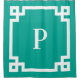 Teal Green White Greek Key Bold Border Monogram Shower Curtain