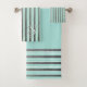 Teal, Grey, and White Stripes Bath Towel Set. A blue, monogrammed modern, chic, and contemporary pattern design to enhance your decor for the master or guest bathroom. Change the monogram, background colour, or just enjoy the pattern. I would be happy to rescale, tint, or design with you in mind, just message me to get started.