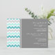 Engagement party invitations in elegant turquoise aqua blue, grey and white fun and retro chevron zigzags stripes vintage pattern. Fully customisable with your engagement party details. Also available in a wide range of matching wedding products.