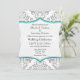 Teal Grey Damask Bracket Wedding Invite