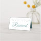 These beautiful place cards are a great way of letting your guests know which seats are reserved for family and other special guests. Designed as a part of our Teal & Grey Elegant Wedding Suite. Features a simple yet elegant design with teal or turquoise text on a white background with a silver faux foil floral border.
