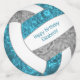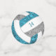 This cute custom volleyball birthday party confetti features a stylised volleyball graphic with teal, grey and white panels on the front and back of each confetti piece, upon which you can customise the text on the front and back - the teal and grey panels of the volleyball are blended with a pretty floral kaleidoscopic pattern for a textured appearance that is artsy and girly - by katz_d_zynes