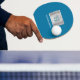 Teal & Grey Monogram, White Name, Silver, Blue Ping Pong Paddle