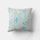 Elegant and modern turquoise aqua blue, grey and white cute paisley pattern decorative throw pillow. Fully customisable, add your own text or photo for a truly unique home decor item.
