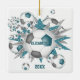 This cute soccer ceramic ornament features an "explosion" of teal, grey and white soccer balls in varying sizes and grey, teal and white star shapes - customise with player's or fan's name and year on the front and back - katz_d_zynes