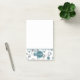 These girly soccer Post-it® Notes (4" x 6") feature randomly arranged teal, grey and white traditional style soccer balls of varying sizes at the bottom edge and overlying customisable name and monogram on a coordinating teal circle pendant and jersey number on one of the soccer balls - by katz_d_zynes