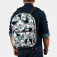 This cool soccer backpack features varied size teal, grey and white soccer balls turned every which way in a 3D-look pattern on a black background - customise with the soccer player's monogram - by katz_d_zynes