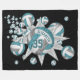 This cute girl's volleyball fleece blanket features an "explosion" of teal, grey and white volleyballs in varying sizes and a grey star shape with white polka dots on a customisable black background - the teal and grey volleyball panels are blended with a girly, floral kaleidoscopic pattern - customise with player's name and jersey number - katz_d_zynes
