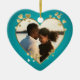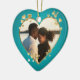 Teal Hearts and Ribbon Photo Ceramic Tree Decoration