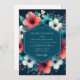 Vibrant hibiscus blooms in shades of coral, teal, and white create a lush, tropical atmosphere. Dark, moody foliage provides a dramatic backdrop for this exotic botanical design, perfect for a destination celebration.