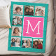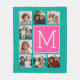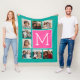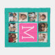 Teal Hot Pink Instagram 8 Photo Collage Monogram Fleece Blanket