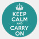 Teal and white "Keep Calm and Carry On" modern version of classic poster.