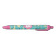 Teal Leaves Botanical Pattern Bright Pink Monogram Black Ink Pen