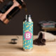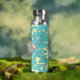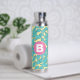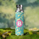 Teal Leaves Botanical Pattern Bright Pink Monogram Water Bottle