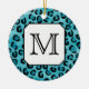 Teal Leopard Print, Custom Monogram. Ceramic Tree Decoration
