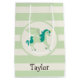 Cool, retro, colourful kid's Teal & Light Green Unicorn design on white stripes, striped pattern with vintage feel. Perfect gift for baby, toddler, kids, children, teens, or adults! Personalised the design by adding a child's name or custom text. Visit our store, Birthday Party House, for more great customisable boy and girl products and room decor!