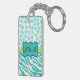 Teal Lime Green & White Zebra & Cheetah Skin Key Ring