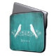 Protect your laptop with a Teal Lovebirds Floral Vine Personalised Laptop Sleeve. Laptop sleeve design features a teal grunge background adorned with a floral vine and a pair of resting birds. Personalise with your own name or create a unique gift for friends or family. Additional items available with this design as well. Please contact me directly for assistance with personalisation.
