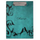 The Teal Lovebirds Personalised Clipboard design features a teal grunge background adorned with a leafy vine and a pair of resting birds. Personalise with your own name or create a unique gift for friends or family. Additional items available with this design as well. Please contact me directly for assistance with personalisation.