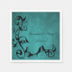 Personalise a unique napkin for your wedding reception guests with a set of Teal Lovebirds Wedding Napkins. Napkin design features a teal grunge background adorned with a leafy vine and two resting lovebirds. Personalise with the groom and bride's names along with the wedding date. Additional wedding stationery available with this design as well. Need help with customisation? Please contact me and I will work out the wording and details to fit this design to your satisfaction.