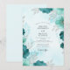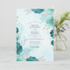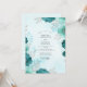 This design features lush teal peonies and ranunculus blooms nestled among shimmering silver-etched leaves. A soft watercolor wash in shades of aqua and light blue creates a serene and ethereal mood. The cool color palette is perfect for a sophisticated winter or coastal event. Artistic details bring a touch of luxury to the botanical elements.