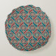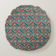 Teal Maroon Beige Ethnic Pattern Flowers, Chevrons Round Cushion